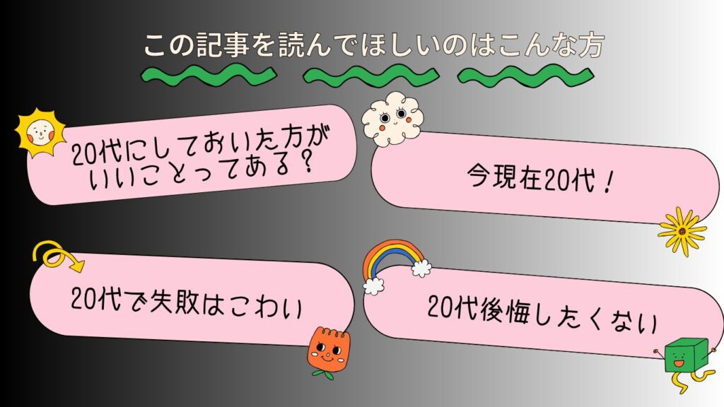 20代は、これからの人生の土台をつくるとても大切な時期。