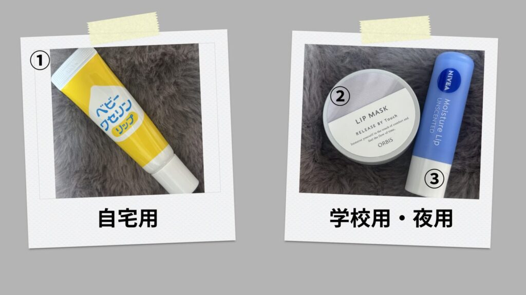さっさママの娘の場合、唇の荒れが日によりかなり違うので、色々試しながら、今は以下の3点を使い分けして使っています。