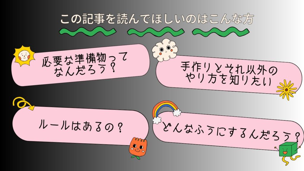 どんな行事なのか、何がいるのかなど悩みますよね、、、。